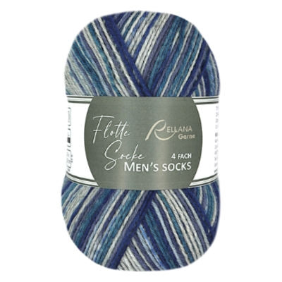 Flotte Socke 4ply Men's Socks is a high-quality sock yarn made from 75% superwash wool and 25% polyamide - easy-care and pleasantly warm. Ideal for socks, accessories, or tops when a more understated look is desired. There are 6 colour variations to choose from in grey and denim tones - subtle and timeless.